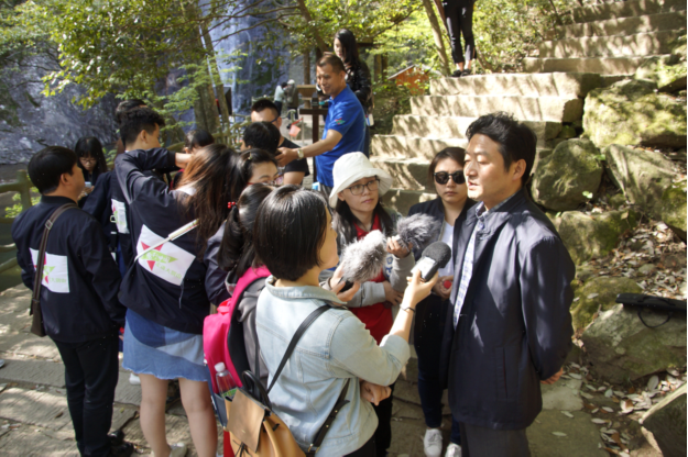 多家交通广播记者就天堂寨旅游扶贫经验及所取得的成效采访天堂寨旅游发展有限公司总经理顾建华