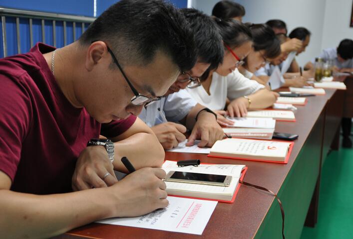 在随后的“牢记历史使命、重温入党誓词”环节中,党员们认真书写了入党誓词,并郑重署名,在一笔一划中进一步强化党的意识、锤炼坚强党性。集团本部第二党支部修治海、第一党支部陶涛在会上进行了交流发言,结合各自工作实际,就“什么是新时代担当作为的合格党员,怎样做新时代担当作为的合格党员,如何结合实际争做一名新时代敢担当、善作为的好党员”等方面交流了感想,分享了心得。