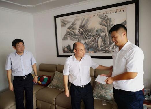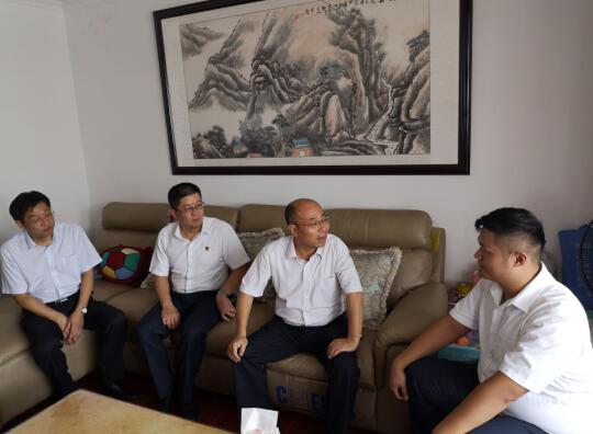 2018年7月26日,省旅游集团总经理、党委副书记张辉在安兴发展公司党总支书记毕义友、淮北安兴公司党支部书记唐然的陪同下,走访慰问了淮北公司困难党员鲍龙龙,送去了党组织的亲切关怀。
