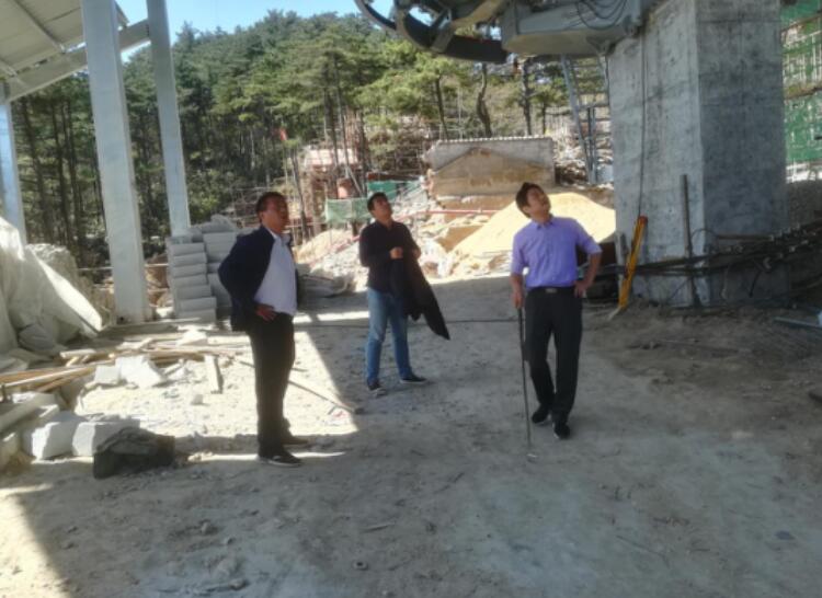 2018年10月6日,集团公司副总经理顾建华率集团公司规划发展部副部长吕光等一行,在天堂寨旅游发展有限公司总经理芦军、副总经理吴昊及索道项目相关负责人的陪同下,实地查看了索道改造项目站房施工进度情况。